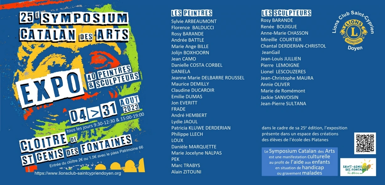 Le 25ème symposium de Saint Génis des Fontaines se tiendra du 4 au 31 août 2023. L'événement présentera une exposition de peinture et sculpture qui aura lieu au Cloître de Saint Génis des Fontaines. Le vernissage aura lieu le 4 août à 16h, offrant aux visiteurs l'occasion de découvrir en avant-première les œuvres présentées.Horaires d'ouvertures […]